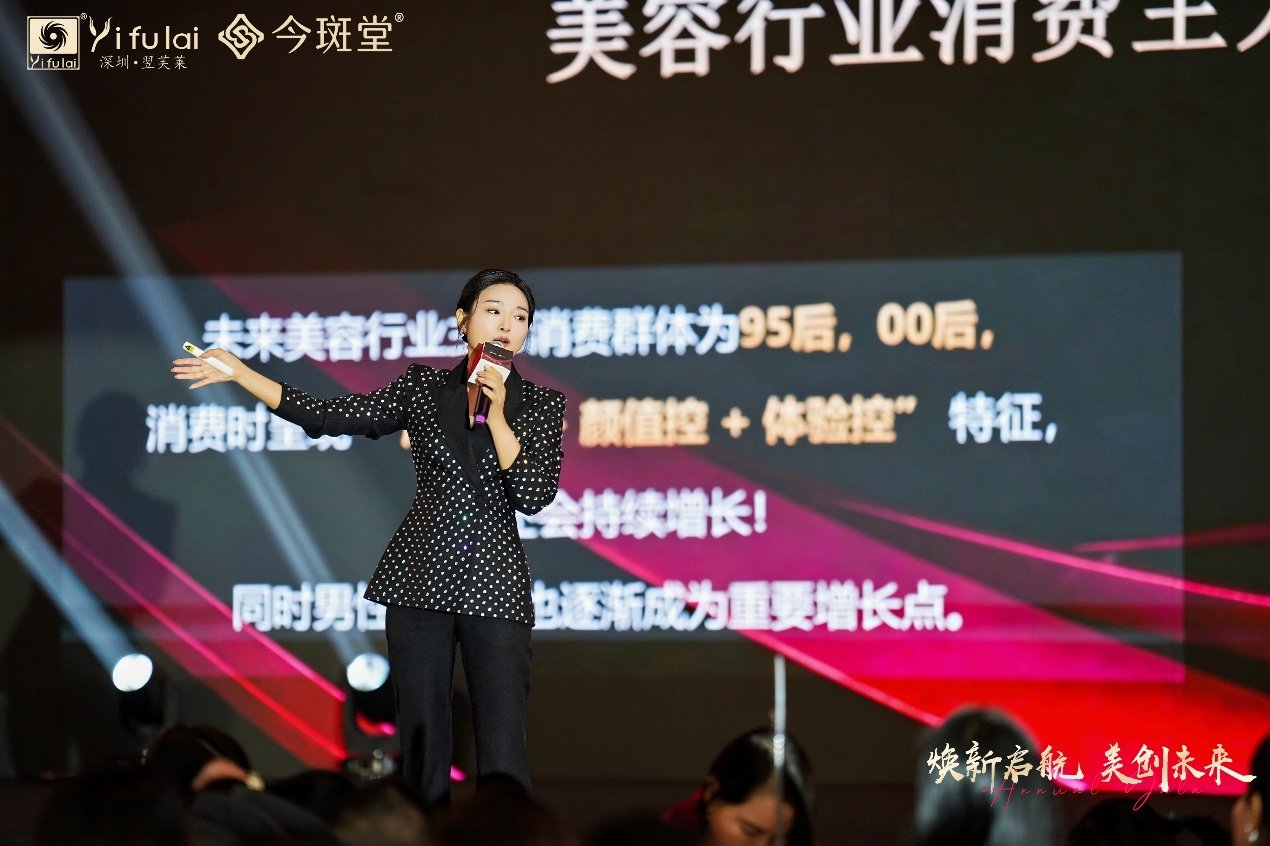 何沁琳女士登台深度解读新品项及产品体系,用通俗易懂的语言拆解美白科技的核心密码,层层揭秘背后的研发匠心。网红店模式正式发布,全新渠道创新理念引发全场热议!
